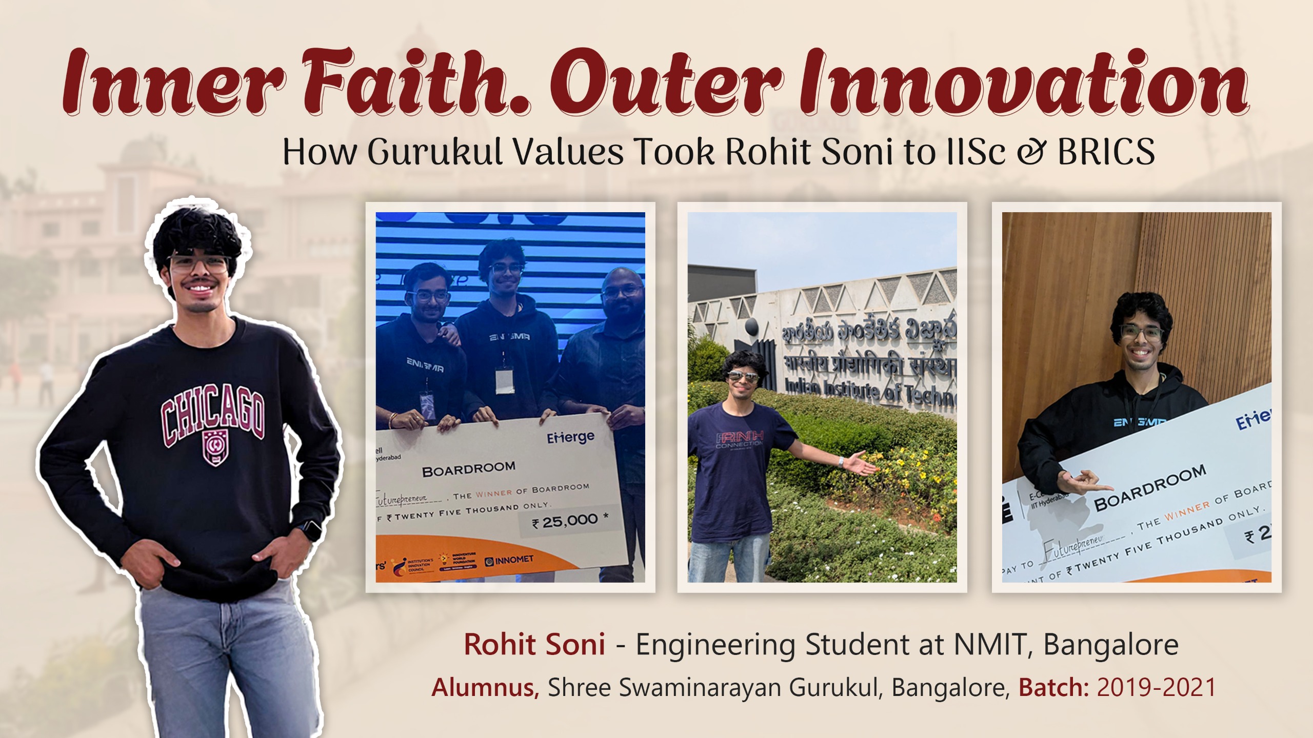 The Rohit Soni Gurukul Journey reflects the holistic education model of Shree Swaminarayan Gurukul, where learning goes beyond academics to build character, discipline, and spiritual awareness. This foundation helps students remain calm and focused in high-pressure environments such as IISc and national-level competitions. Rohit’s achievements at the BRICS Innovation Finals and IIT Hyderabad show that when modern engineering skills are guided by strong values, innovation gains deeper purpose. Such value-based education prepares students to become responsible leaders who contribute meaningfully to society while achieving global excellence.